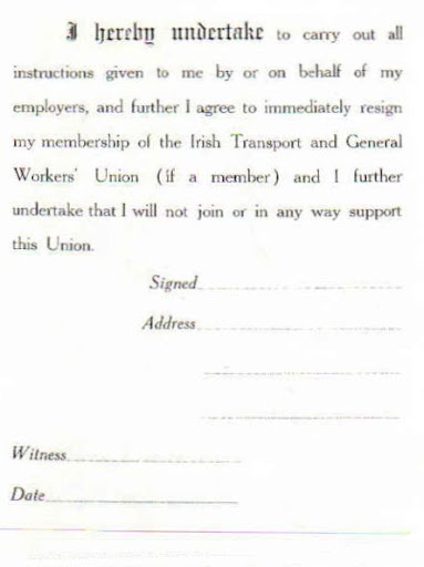 Larkin had organized the workers. The plutocrat, William Martin Murphy – newspaper magnate, tramway boss, international investor, prominent Irish nationalist and former MP – organized the employers. In August 1913 his Dublin Employers Federation announced that no one – man, woman or child – might work in Dublin unless first he pledged to repudiate Larkin's union. The workers refused to pledge. Whereupon they were locked out of work.