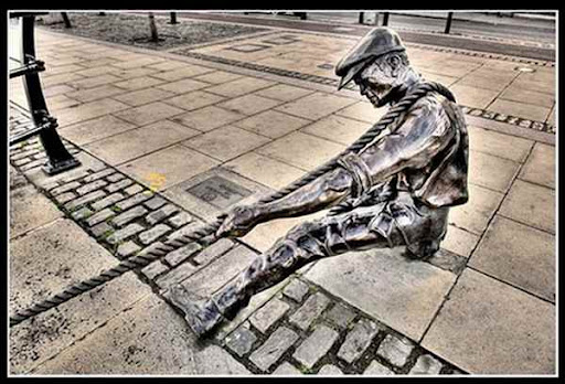 A preponderance of this work centred round the Dublin docks. Dock work was low-paid, bit-rate, dangerous and casual. And there was never enough of it: a labour surplus kept wages down, so that a Dublin labourer was paid 18 shillings for a 70 hour week, two-thirds the average in Britain. At the time, 22 shillings per week was considered the barest minimum to maintain "merely physical efficiency".